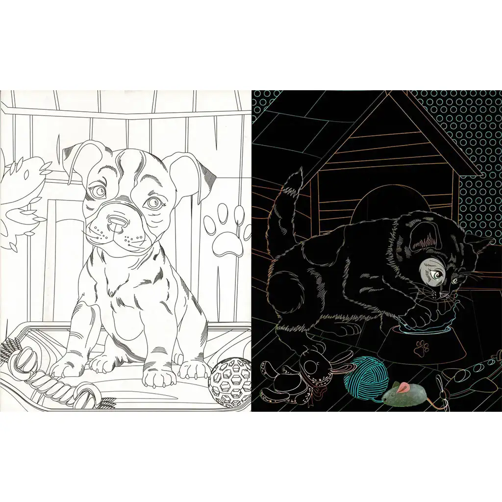 Skrytí miláčikovia - Omaľovánka so škrabacími a vyfarbovacími stranami
