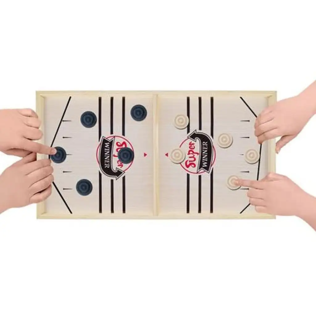 Sling Puck je u nás menej známa zručnostná hra, no vďaka svojej jednoduchosti a rýchlosti je skvelou voľbou a zároveň výbornou zábavou. Drevený rám hracej dosky je rozdelený na dve časti, s malou bránkou uprostred. Obaja hráči začínajú hru s rovnakým počtom pukov, ktoré musia pomocou gumy natiahnutej na svojej strane streliť cez malú bránku na súperovu stranu. Hru vyhráva ten, kto ako prvý odstráni všetky puky zo svojej strany, vrátane tých, ktoré už súper prestrelil. Sling Puck je skvelá párty hra, ktorá rozvíja koordináciu ruka-oko a zručnosť, a navyše sa organizujú aj seriózne súťaže.