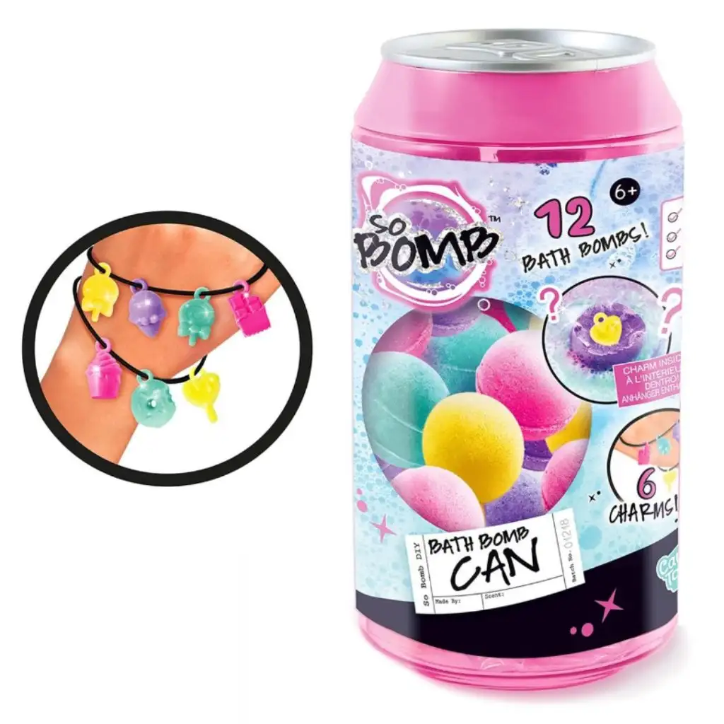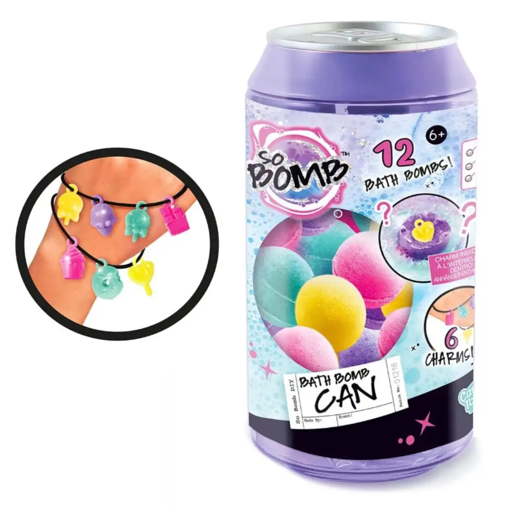 So Bomb kúpeľová guľa v plechovke na nápoje skutočne premení kúpanie na farebný a magický zážitok! Tieto šumivé, voňavé kúpeľové bomby vytvárajú skutočnú wellness atmosféru pre deti. Sada obsahuje 20 kúpeľových gúľ, z ktorých 10 ukrýva prekvapivé prívesky, ktoré je možné navliecť na náramok alebo retiazku. Tieto prívesky prichádzajú v rôznych dievčenských odtieňoch a majú tvar obľúbených sladkostí, ako sú zmrzlina, šiška, lízanka alebo čokoláda. Balenie v tvare plechovky na nápoje je nielen vzrušujúce, ale aj kompatibilné s dávkovačom gúľ So Bomb (BBD046), takže ho môžete kedykoľvek doplniť. Táto sada je nielen zábavná, ale aj kreatívny spôsob, ako priniesť trochu mágie do kúpeľa pre deti.