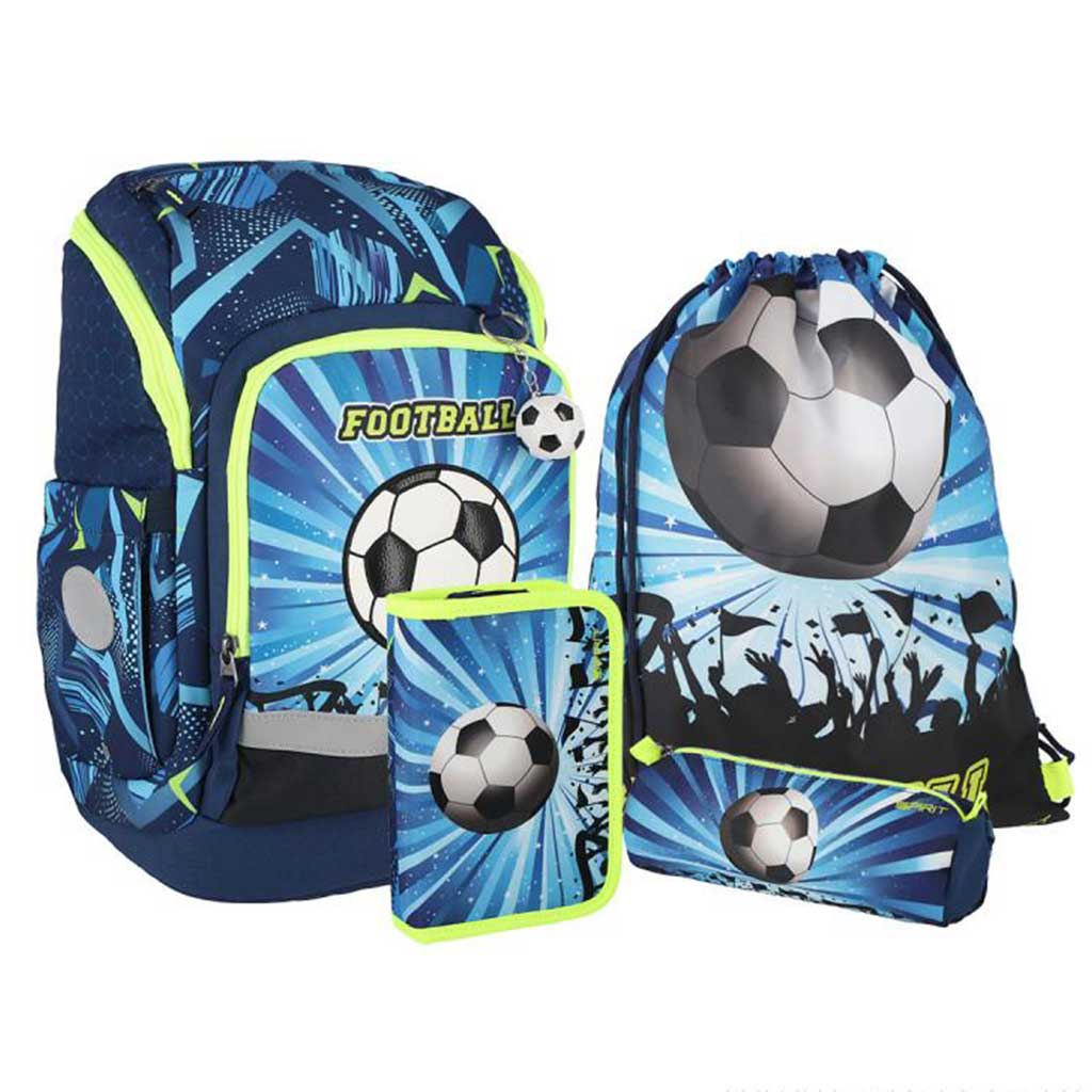 Spirit: Školská taška, batoh s futbalovým vzorom, 4-dielna sada, 32×19×44 cm