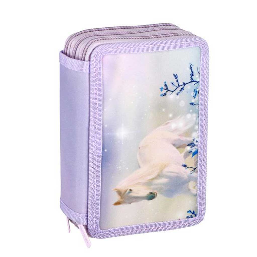 Tento trojposchodový peračník ozdobený motívom koní je ideálnou voľbou, ak vaše dieťa miluje kone a čarovné, upokojujúce vzory. Štíhly, cválajúci biely kôň a jemné pastelové odtiene robia tento kúsok naozaj výnimočným, takže to nie je len praktický predmet, ale aj obľúbený doplnok do každodenného života.
