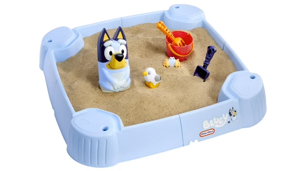 Toto pieskovisko prináša pláž do záhrady detí! Pieskovisko Bluey Beach Day dokáže pojať až 45 kilogramov piesku a má odolný plastový kryt, ktorý chráni piesok medzi hracími časmi. Sada obsahuje množstvo doplnkov inšpirovaných epizódou Bluey, Pláž!, ako napríklad hrable, lopatku, valec s odtlačkom čajky, formu na hrad z piesku Bluey a formu na krokodíla — len si dajte pozor na zvláštne pelikány!Strávte deň s Bluey pri špliechaní pomocou Bluey Beach Water Table. Tento 2 v 1 senzorický stôl má vzrušujúce vodné funkcie, ako je kývací vedro, rotujúce ozubené kolesá a dve kaskádové bazény. Deti môžu plávať po pomalej rieke s plávajúcimi postavičkami Bluey alebo použiť pieskové nástroje na rozlet svojej fantázie! Trojuholníkový vnútorný priestor je vhodný na uskladnenie vody a piesku alebo dokonca na uskladnenie hračiek do ďalšieho použitia.