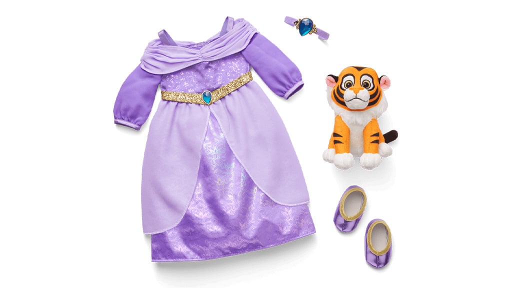 Rodiny môžu pozdvihnúť zábavu na úplne novú úroveň s Jasmín princezná šaty doplnkovým balíčkom. Táto sada obsahuje Jasmín princezná kráľovské, fialové saténové šaty, jeden pár elegantných sandálov a trblietavú čelenku. Deti môžu zažiť vlastné arabské dobrodružstvá s roztomilou Rajah figúrkou plyšovou hračkou, ktorá je súčasťou balenia.