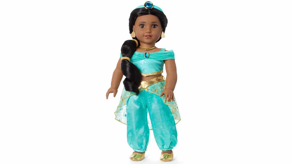 Táto bábika American Girl je žiarivá, trblietavá a ohromujúca. Na svoj kráľovský debut má Jasmína na sebe irizujúci top s fóliovým vzorom a saténové nohavice, ku ktorým patrí aj ozdobná, našitá sukňa. Vzhľad princeznej z Agrabah dopĺňa trblietavá tyrkysová čelenka, špicaté papuče, zlaté doplnky a dve zlaté gumičky do vlasov. Táto bábika je dokonalou voľbou pre každú malú princeznú, ktorá miluje rozprávkové, detailne prepracované oblečenie a výnimočné doplnky.