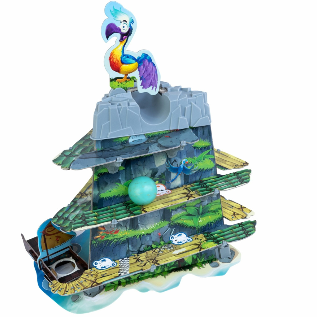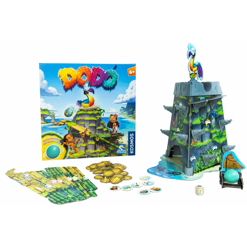 Spoločenská hra Dodó je vzrušujúca a vizuálne pútavá zručnostná hra, ktorá okamžite zaujme deti aj rodičov. V centre hry stojí veselý dodo vták a kotúľajúce sa vajce, ktoré treba šikovne viesť po dráhe nadol. Farebné, detailné herné prvky – ako trať pripomínajúca svah, malý čln a špeciálne označenia – navodzujú pravú atmosféru dobrodružstva, akoby ste hrali na exotickom ostrove.