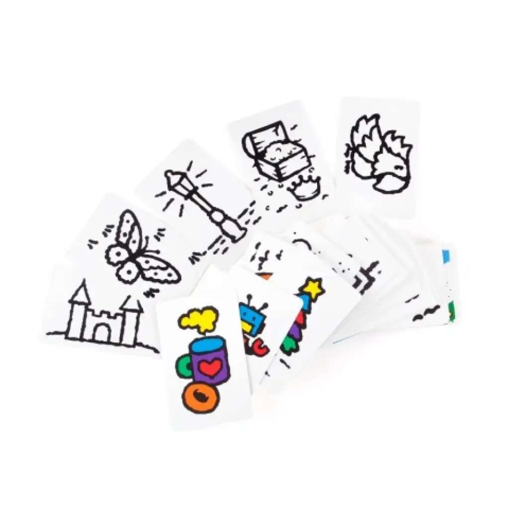 Speed Colors je fantastická spoločenská hra, ktorá rozvíja pamäť aj umelecké zručnosti. Úlohou je zapamätať si farebný obrázok na jednej strane karty a potom vyfarbiť čiernobiely obrázok na druhej strane presne tak isto. Každé pole má bodovú hodnotu, takže sa oplatí ponáhľať, ale treba byť presný, pretože ak vyjdete z línie, body sa nepočítajú. Uvidíme, kto z vás je najšikovnejší. Hra je ideálnou voľbou pre malých aj veľkých.