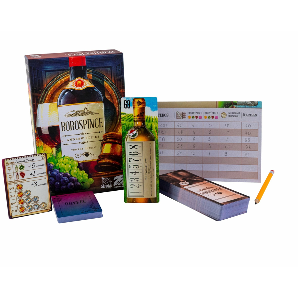 Spoločenská hra Borospince je strategická kartová hra so špecifickou atmosférou, v ktorej si môžete spolu s dieťaťom vybudovať vlastnú vínnu pivnicu – no nezáleží iba na tom, v akom poradí sú fľaše umiestnené! Krásne ilustrácie a jedinečná téma vás okamžite vtiahnu, pričom hra kladie pred vás neustále rozhodnutia. Súčasne musíte sledovať aukcie, ťahy súperov a požiadavky zákazníkov, takže každá partia zostáva napínavá a rôznorodá.