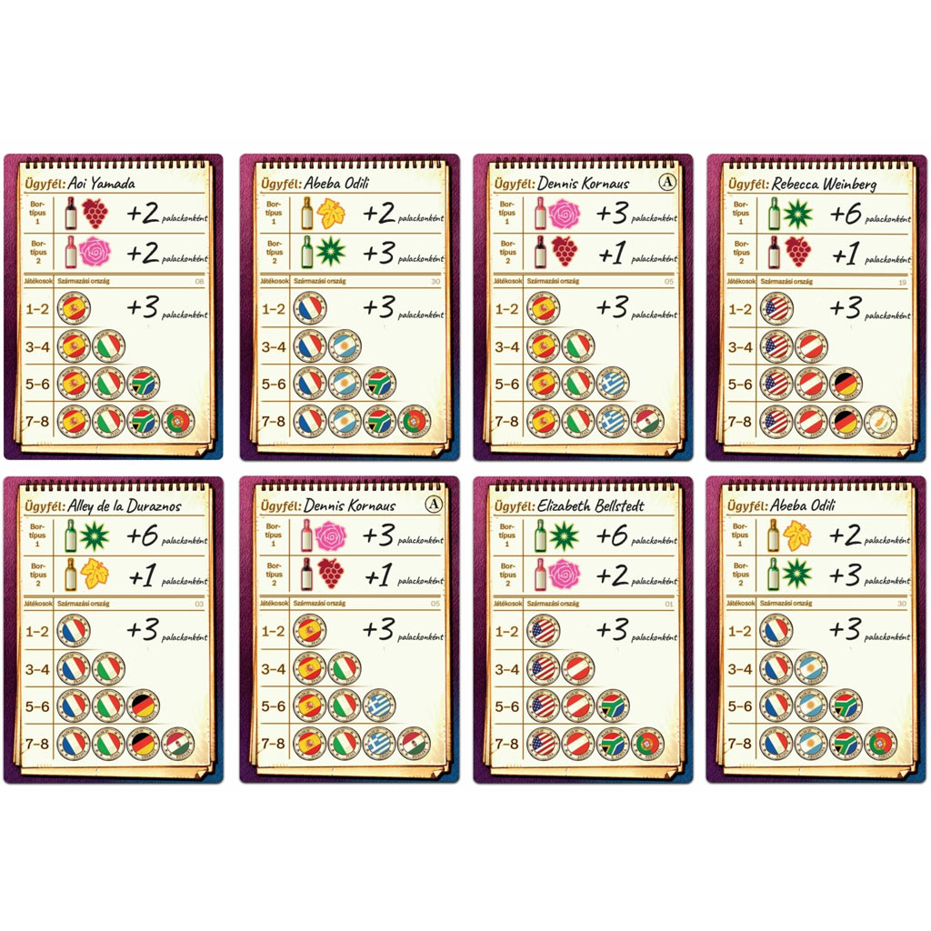 Pri bodovaní nezáleží len na tom, aké vína ste nazbierali, ale aj na tom, do akej miery spĺňajú očakávania uvedené na karte zákazníka. Niektoré vinohradnícke oblasti, farby alebo typy vín prinášajú extra body, preto sa oplatí plánovať dopredu a takticky budovať svoju pivnicu. Na konci hry vyhráva ten, kto získa najviac bodov vďaka dobre načasovaným licitom a rozumne vybudovanej vínnej pivnici.