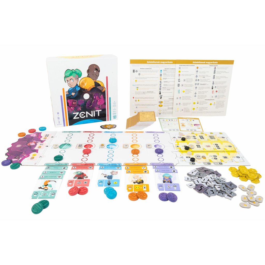 Spoločenská hra Zenit je vzrušujúci dvojhráčový strategický súboj, v ktorom sa spolu s vaším dieťaťom môžete ponoriť do boja o budúcnosť slnečnej sústavy. Počas hry ako zástupcovia rôznych frakcií – ľudí, robotov a animodov – budete šikovne taktizovať, zatiaľ čo dobýjate planéty a získavate vplyv nad senátom. Ak máte radi hry, kde každé rozhodnutie má váhu, táto vás určite zaujme.