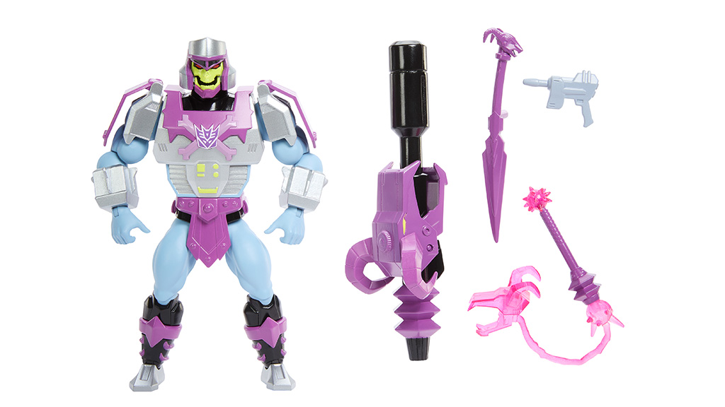 Vďaka spolupráci medzi Masters of the Universe a Transformers môžu rodiny znovu prežiť svoje obľúbené detské chvíle a predstaviť najmenším vzrušujúci svet Cybertronu a Eternie. Táto výnimočná spolupráca dáva možnosť rodičom a deťom spoločne objavovať legendárnych hrdinov a zloduchov, hrať sa a zbierať rôzne figúrky. Fanúšikovia Masters of the Universe nájdu množstvo zberateľských figúrok a doplnkov, zatiaľ čo priaznivci Transformers si môžu vybrať zo širokej ponuky tematických darčekových predmetov a hračiek. Tento spoločný zážitok prináša nielen radosť z hry, ale aj posilňuje rodinné putá, pričom deti spoznávajú príbehy a postavy dvoch ikonických vesmírov.Skeletor nosí silné brnenie, ktoré inšpiroval hlavný záporák Transformers. Táto akčná figúrka vzdáva hold obom univerzám prepracovanými detailmi, prémiovou pohyblivosťou, dynamickým dizajnom brnenia a rôznymi doplnkami. Táto figúrka poskytuje výnimočný zážitok nielen pre zberateľov, ale aj pre fanúšikov, pretože spája to najlepšie z oboch svetov v jedinečnom, pôsobivom vzhľade.