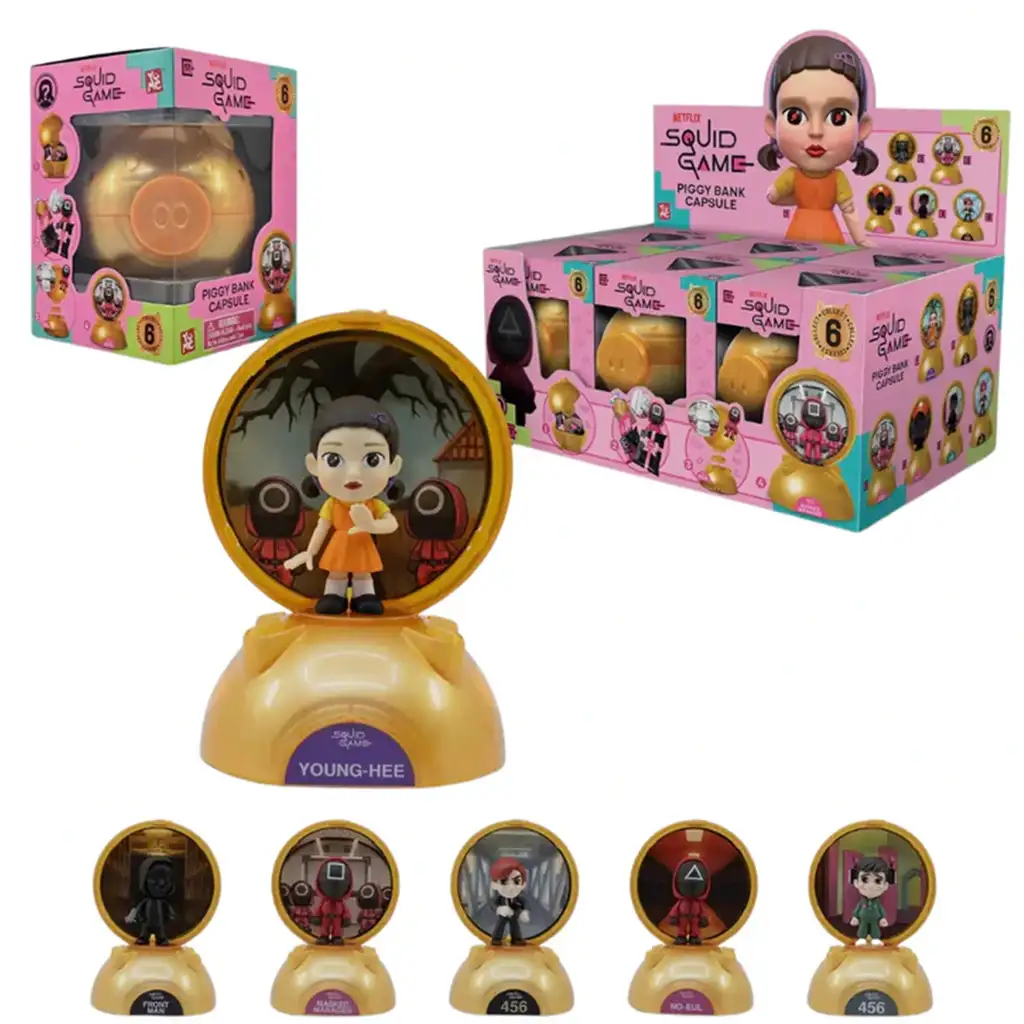 Ak ste fanúšikom jedného z najúspešnejších seriálov Netflixu, Squid Game, potom táto Prasiatková Prekvapivá Kapsula bude pre vás nevyhnutným kúskom! Vo vnútri ikonickej zlatej prasiatkovej kapsuly sa skrýva približne 7 cm vysoká zberateľská mini figúrka, ktorá sa stane viditeľnou až po rozbalení – takže každý kus je skutočným prekvapením! Špeciálna kapsula je nielen hravá, ale aj praktická: jej vrch sa dá premeniť na stojan, takže figúrka dostane miesto na vašej poličke s jedinečným pozadím a elegantným podstavcom.