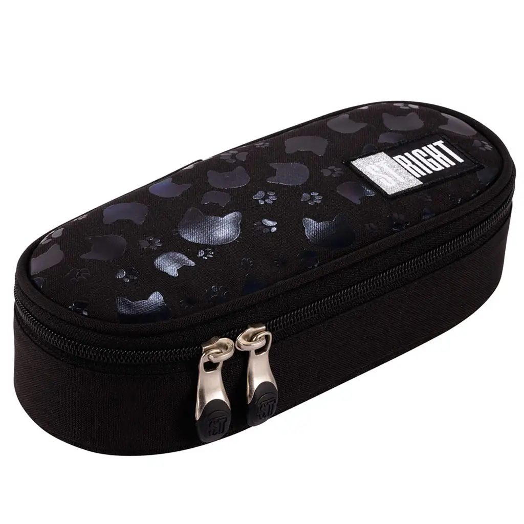 St.Right Black Cats oválny peračník s mačkami je dokonalou voľbou pre každého malého žiaka, ktorý má rád štýlové a praktické školské doplnky. Tento peračník sa pýši elegantnou čiernou farbou, ktorú zdobia diskrétne, lesklé mačacie vzory, čím mu dodávajú naozaj módny vzhľad.