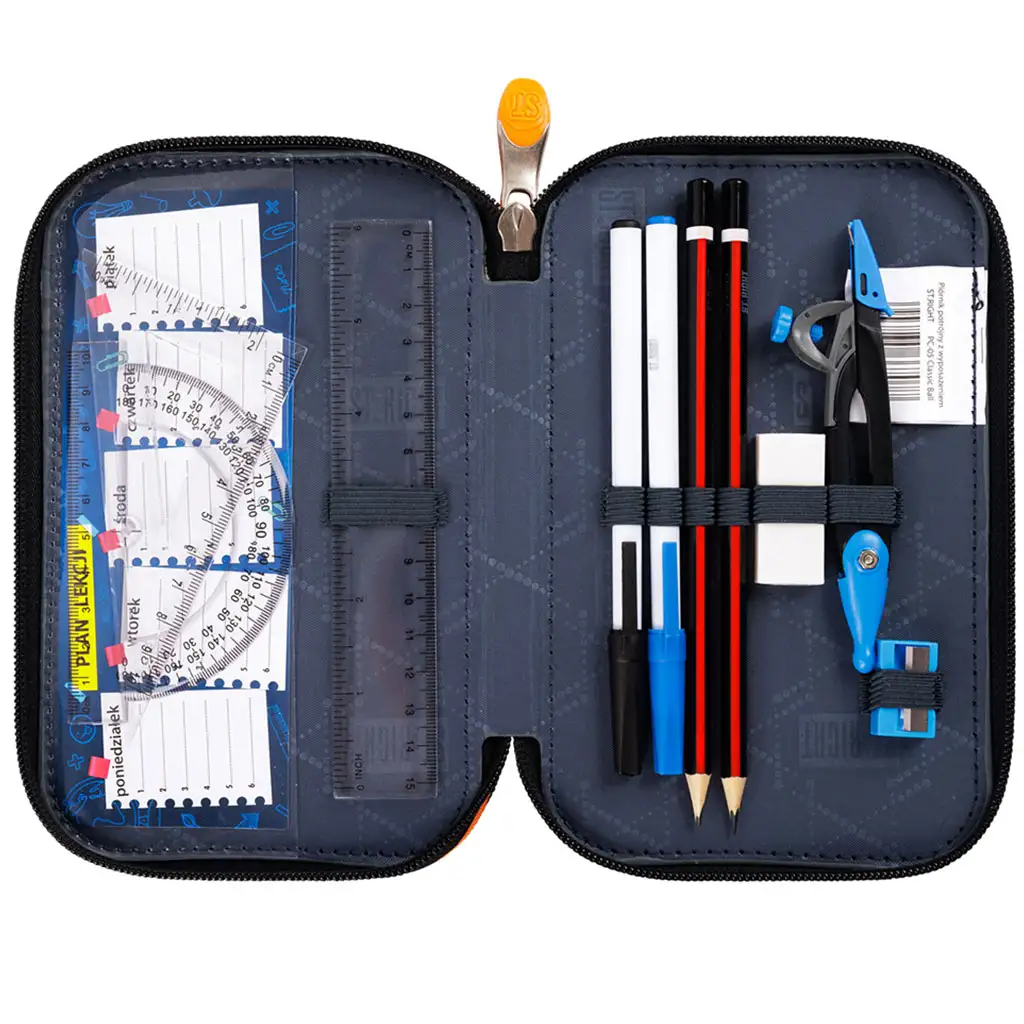 St.Right Classic Ball trojposchodový naplnený peračník je ideálnou voľbou pre každého mladého športového nadšenca, najmä pre tých, ktorí milujú futbal. Tento peračník je nielen praktický, ale aj mimoriadne štýlový vďaka futbalovému vzoru a žiarivo oranžovým zipsom.