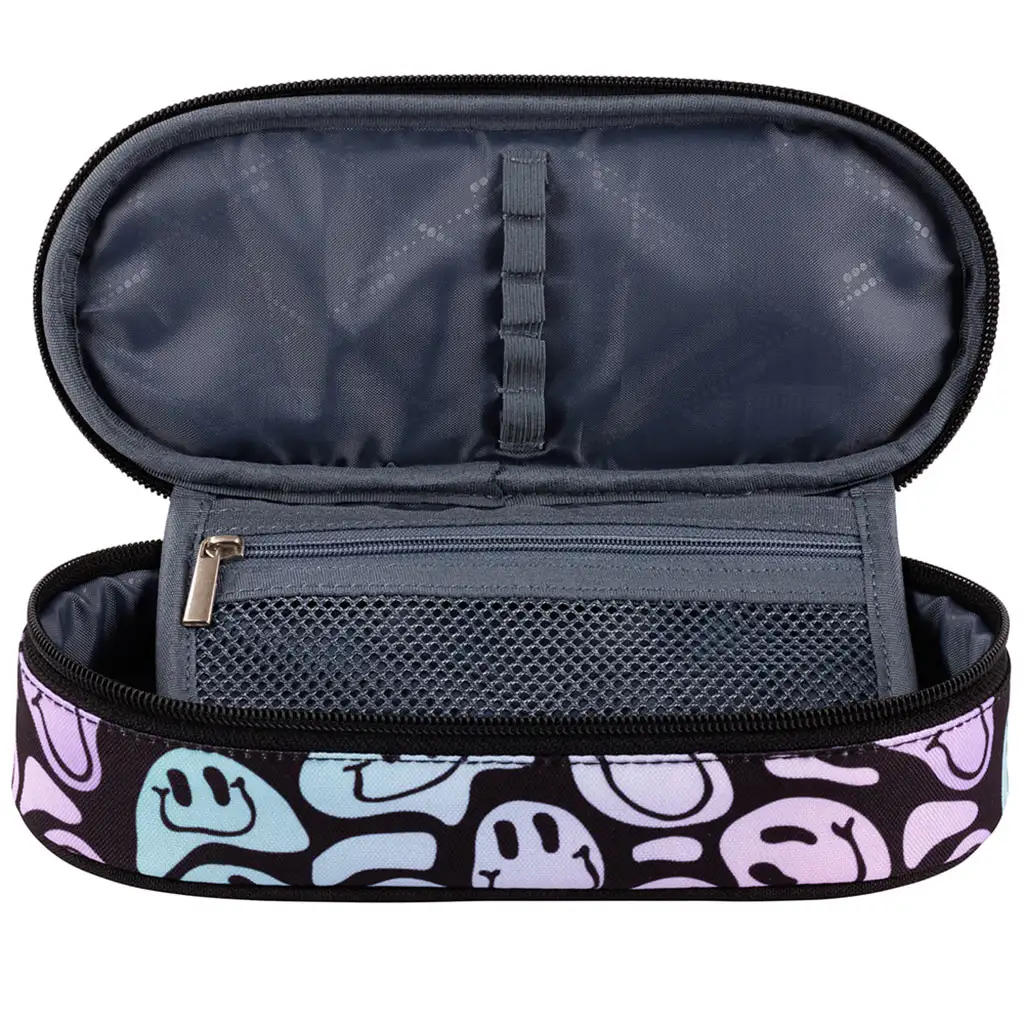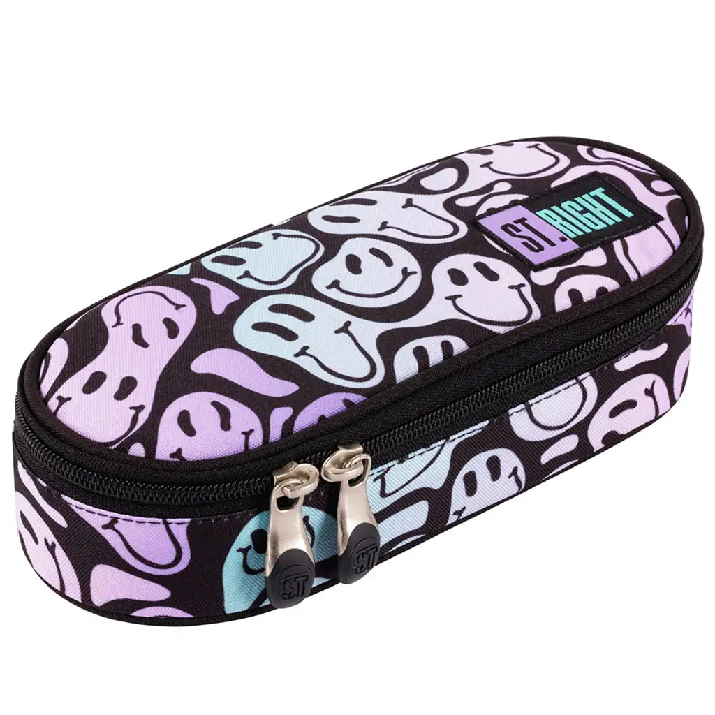 Oválny peračník St.Right Crazy Face je veselý a praktický doplnok, ktorý zaručene oživí každodennú školskú rutinu. Žiarivé farby a množstvo usmievavých tvárí okamžite vyčarujú úsmev na tvári, zatiaľ čo praktický dizajn peračníka udrží všetky potrebné písacie potreby v poriadku a ľahko dostupné.
