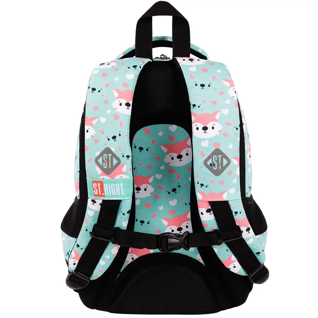 Pre pohodlie a bezpečnosť má St. Right Lovely Foxy školská taška profilovaný, ergonomický a priedušný chrbát s dodatočným vystužením. Mäkké, nastaviteľné ramenné popruhy a hrudný pás prispievajú k pohodlnému noseniu. Ergonomicky vystužená rukoväť a veľké, pohodlné zipsové koncovky uľahčujú používanie tašky.
