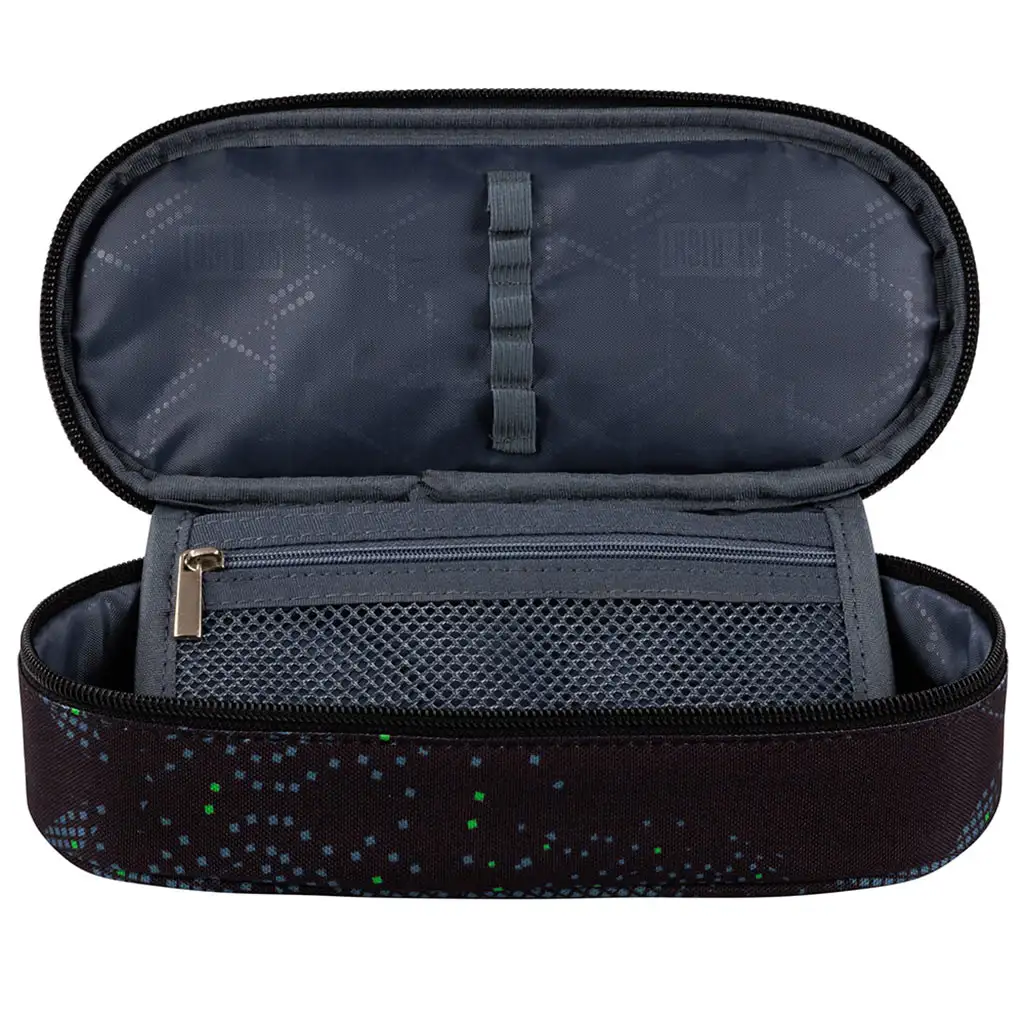 Peračník je priestranný, takže poskytuje dostatok miesta pre všetky potrebné písacie potreby. Polstrovaná hlavná priehradka chráni ceruzky, perá a ďalšie doplnky, aby boli vždy v bezpečí. Vnútorné vrecko na zips je ideálne na uloženie menších predmetov, ako sú guma alebo strúhadlo, takže všetko bude vždy po ruke, keď to bude potrebné. Elastické slučky vo veku pomáhajú udržiavať písacie potreby v poriadku, aby ste ich nemuseli hľadať.
