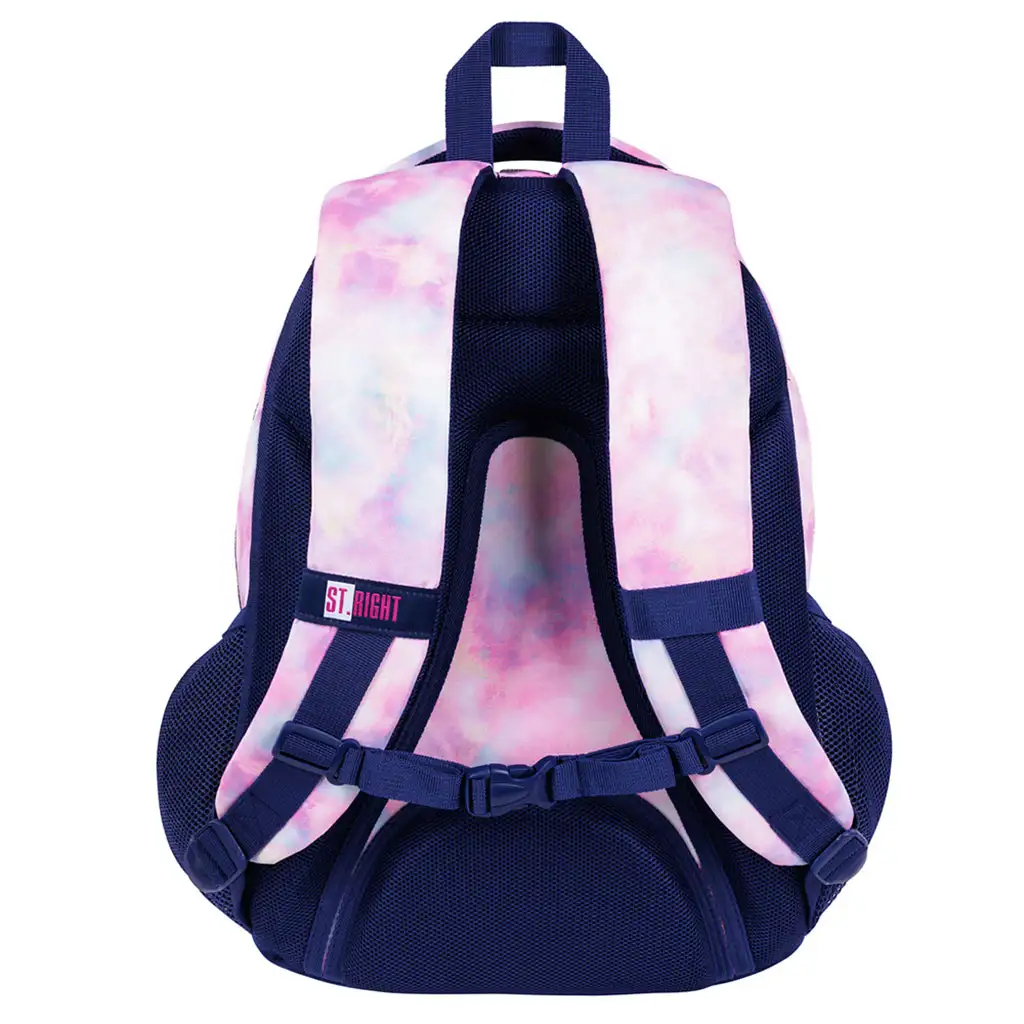St.Right Pink Sky trojkomorový školský batoh je dokonalou voľbou pre dievčatá, ktoré majú rady módne a praktické doplnky. Tento školský batoh so svojou krásnou pastelovou ružovou a modrou farebnou schémou okamžite získa obľubu detí. Rozmery batohu sú ideálne na školské použitie: 42 cm vysoký, 30 cm široký a 19 cm hlboký, čo poskytuje dostatok miesta pre všetky potrebné školské pomôcky.