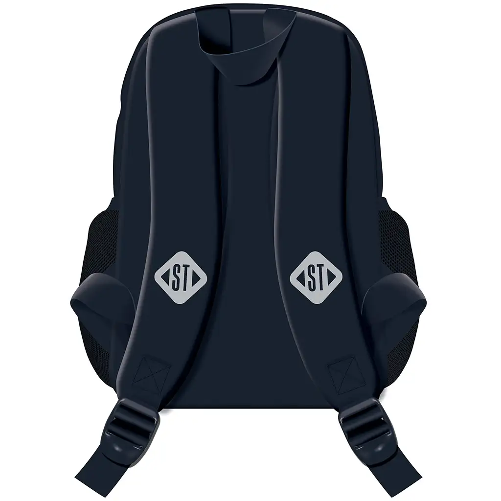St.Right Modrý školský batoh s motívom T-Rexa BP70 je perfektnou voľbou pre všetkých malých školákov, ktorí sú fanúšikmi dinosaurov! Tmavomodrý podklad batohu zdobí pútavá, modrá hlava T-Rexa, ktorá okamžite pritiahne pozornosť a dodáva taške štýlový vzhľad. Svetlomodré zipsy a detaily oživujú celkový dojem, takže vaše dieťa bude tento moderný batoh s radosťou nosiť každý deň do školy.