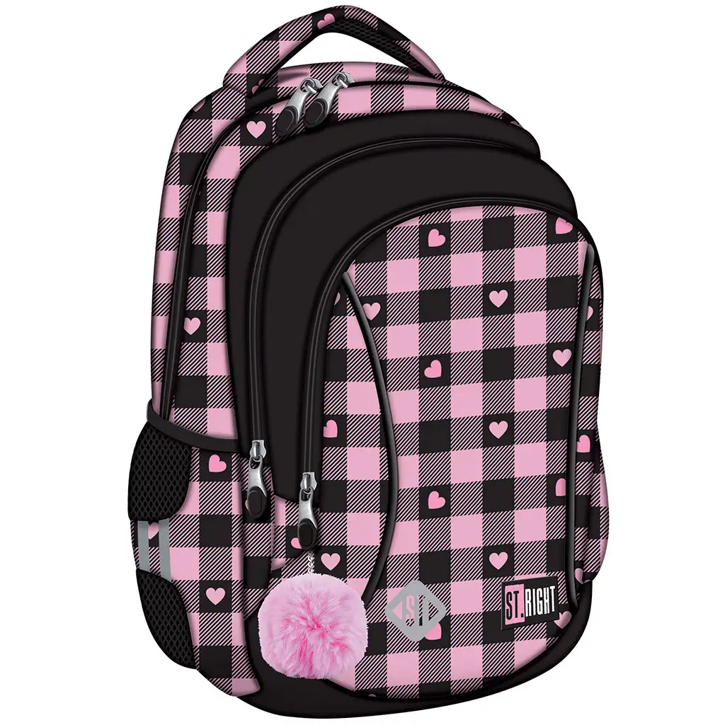 Odolné materiály a pevné zipsy garantujú, že školská taška St.Right Pink-Black Heart bude spoľahlivým spoločníkom vášho dieťaťa v škole aj mimo nej dlhé roky.