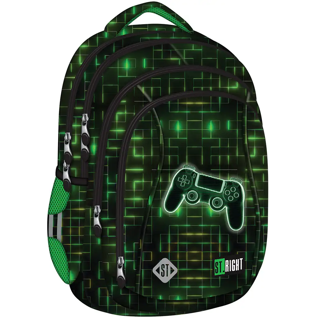 St.Right zeleno-čierny školský batoh s motívom ovládača BP04 43x32x20 cm