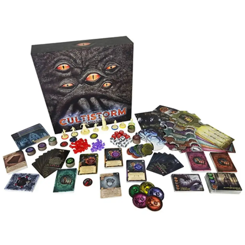 Cultistorm je kooperatívna stolová hra, v ktorej hráči stvárňujú detektívov špeciálneho oddelenia zriadeného Úradom pre vyšetrovanie štátu Massachusetts a Miskatonickou univerzitou v Amerike na začiatku 20. storočia. Desivo zdeformovaní, neznámi ľudia sa objavujú v oblasti Arkhamu s cieľom privolať svojich pánov z kozmického priestoru a času, Nezmieriteľných Starcov, prostredníctvom temných rituálov. Spoločným cieľom detektívov je spoliehať sa na schopnosti jeden druhého, aby potlačili kultistov zhromažďujúcich sa na miestach a zabránili im v dostatočnom počte privolať Nezmieriteľných Starcov. Ak by sa to predsa len stalo, musia vyhnať všetky objavujúce sa starodávne hrôzy skôr, než prekročia do nášho sveta a prinesú koniec sveta, ako ho poznáme. Počas hry môžu detektívi hľadať užitočné predmety, požiadať o pomoc miestnych obyvateľov a získať dávno zabudnuté vedomosti. Tým získajú množstvo možností, ako úspešne podporiť svojich spoločníkov. Neustála komunikácia a strategické myslenie sú nevyhnutné na porazenie kultistov a zabezpečenie miest! Táto verzia hry obsahuje aj exkluzívny obsah z Kickstarteru.