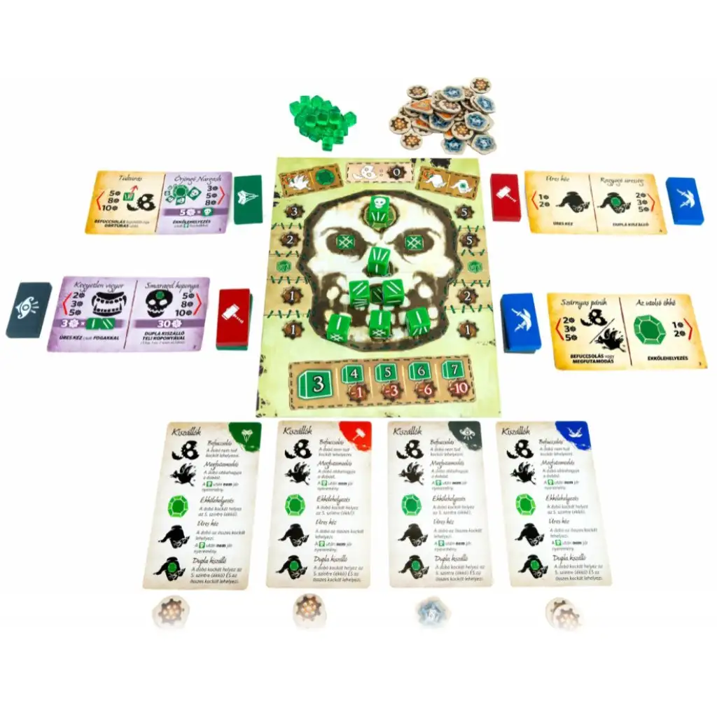 Zatiaľ čo „hádzač“ zvažuje svoje možnosti, ostatní hráči rýchlo uzatvárajú stávky: bude ďalší hod úspešný, alebo sa šťastena odvráti? Rýchle rozhodnutia môžu priniesť vyššie výhry, no riziko je zároveň väčšie. Víťazom sa na konci stáva ten, kto nazbieral najviac ozubených kolies – ale cesta k víťazstvu je plná smiechu, napätia a blafovania. Smaragdové lebky sú ideálnou voľbou pre rodiny a skupiny priateľov, kde každý môže uplatniť svoju taktiku a šťastie.
