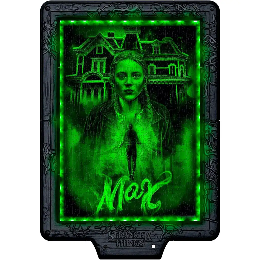 Poskladaj pôsobivý metamorfický obraz a potom si zostav aj špeciálny rám, do ktorého môžeš vložiť LED svetelné pásy. Vďaka prepínateľnému RGB osvetleniu môžeš pozorovať tri rôzne vizuálne efekty v závislosti od toho, akou farbou je puzzle osvetlené. Červené svetlo ukáže desivú postavu Vecnu, zelené zasa postavu Max a pri modrom svetle sa objavia členovia Hellfire Clubu – vďaka tomu je puzzle nielen vizuálne pôsobivé, ale poskytuje aj neustále sa meniaci zážitok.