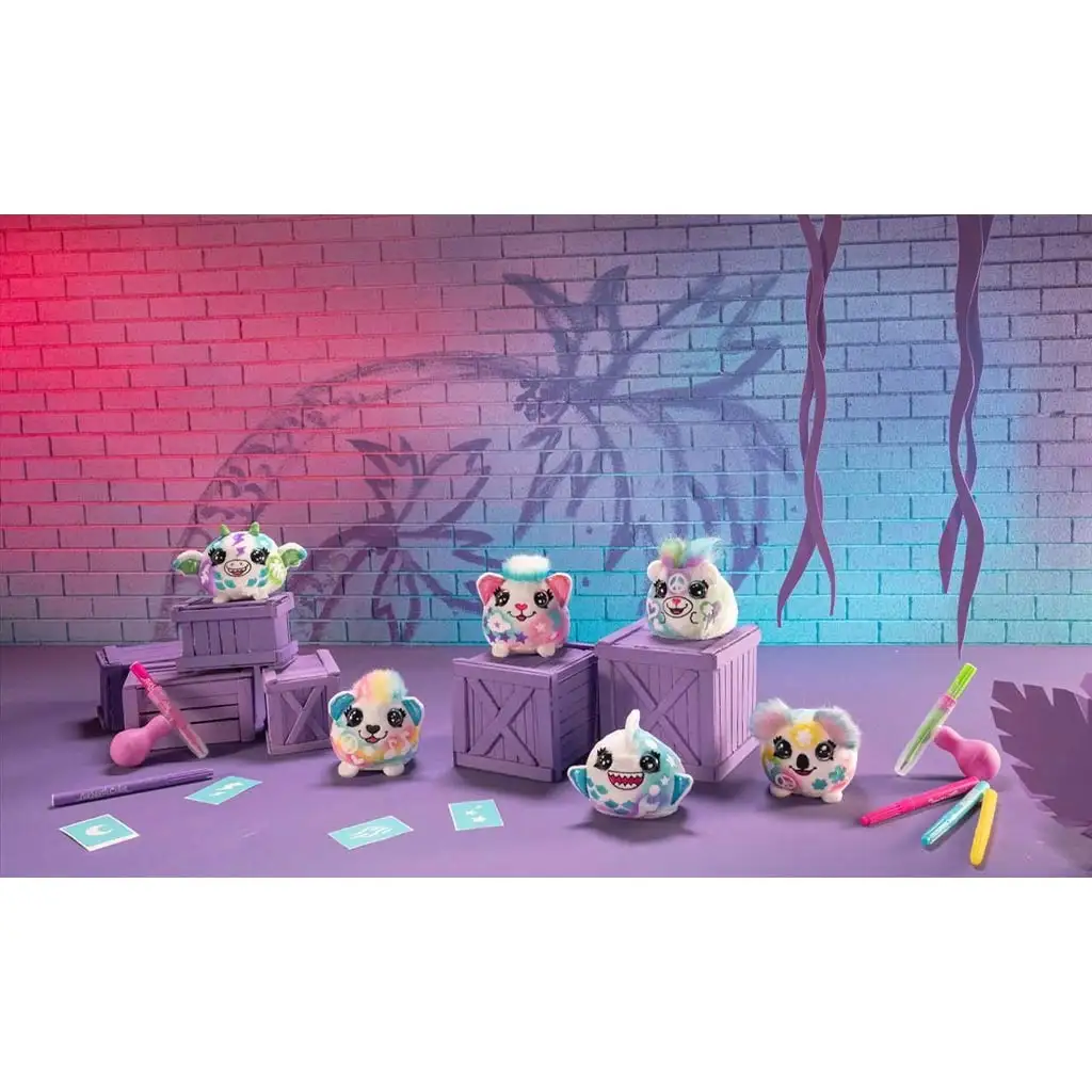 Séria "Style4Ever" predstavuje túto novú kreatívnu hru, ktorá podnecuje detskú fantáziu a kreativitu. V tomto špeciálnom balení nájdete farebné mini zvieratká, ktoré sú dostupné v mnohých variantoch, veľkosti 10 cm. Najlepšie na tom je, že malé plyšové zvieratká môžu byť po praní znova namaľované, takže deti majú možnosť znova a znova si predstaviť a vytvoriť vzor zvieratka. Hra obsahuje 1 ks sprej na farbu s pumpičkou, 2 ks fixky a 25 lepiacich šablón, s ktorými môžu deti vytvárať rôzne, originálne vzory na mini zvieratkách. Návod krok za krokom pomáha deťom, ako vytvoriť svoje vlastné majstrovské diela. A ak by to ešte nestačilo, balenie obsahuje aj prekvapenie v podobe zvieracieho obrázka, ktorý môže byť akýkoľvek z ich obľúbených zvierat: jednorožec, guľôčka, pudel, tulen, opica alebo dokonca husky. Keďže je to prekvapenie, deti uvidia, ktoré zviera bude ich novým obľúbencom, až keď ho rozbalia. Táto hra určite deti zaujme na hodiny a nielenže ich zabaví, ale tiež rozvíja ich kreativitu a zručnosti.