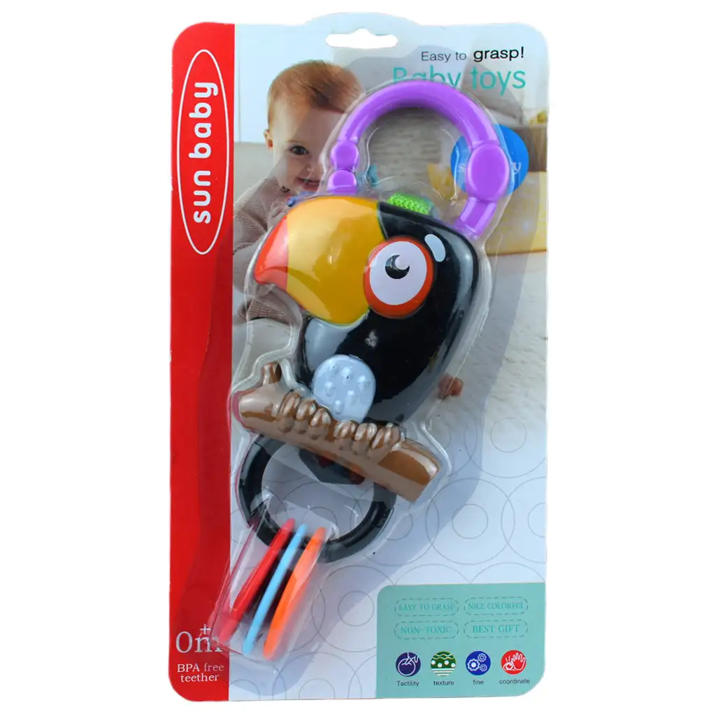 Sun Baby: Veselý tukan bábika s chrastítkom a hryzátkom