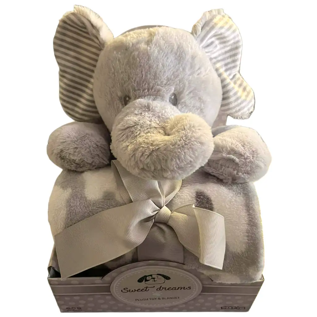 SweetDreams: Sivá deka a plyšový sloník v detskej súprave je dokonalou voľbou, ak hľadáte darček, ktorý je nielen roztomilý, ale aj naozaj praktický. Súprava obsahuje mäkučkého sivého plyšového sloníka a k nemu ladiacu jemnú deku, ktorá poskytuje bábätku teplo a upokojenie v každej chvíli.