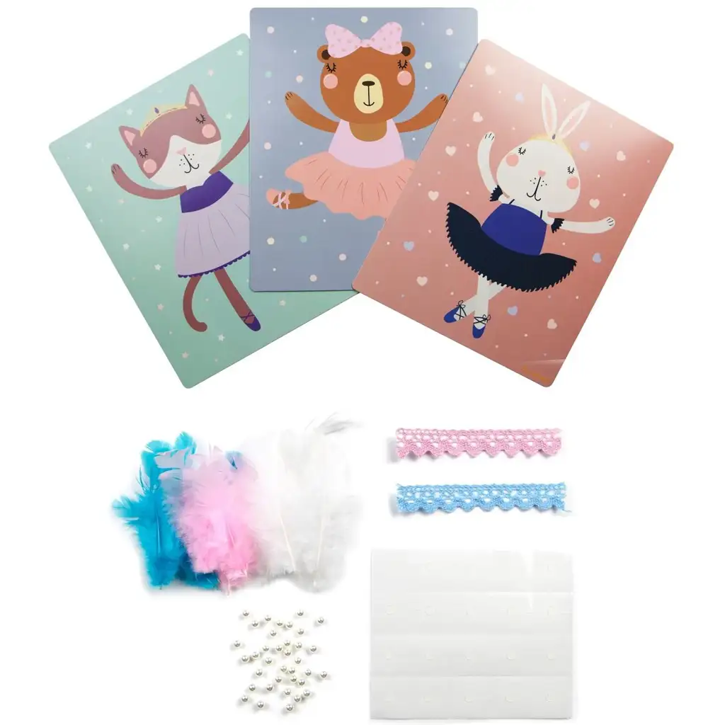 Sada obsahuje všetky potrebné materiály, takže od pier cez korálky a čipkové stuhy až po lepiace bodky je všetko pripravené na zábavné tvorivé popoludnie. Úloha je jednoduchá: stačí sledovať vzor alebo nechať dieťaťu voľnú ruku, aby si podľa vlastného štýlu ozdobilo malé baleríny. Počas kreatívneho trávenia času sa rozvíja jemná motorika, zručnosť, koncentrácia a estetické cítenie.