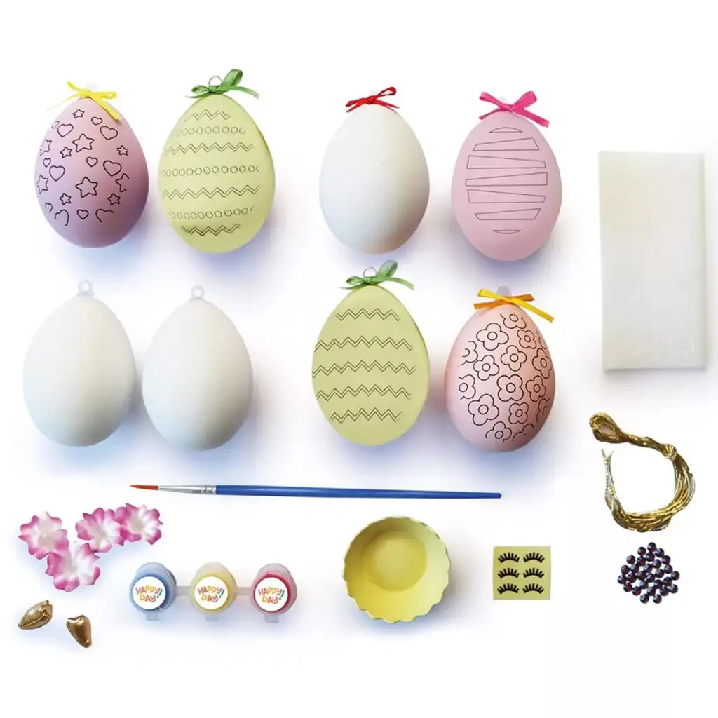 Vajíčka sú ľahko ovládateľné pre deti a s priloženým štetcom, farbami a dekoračnými prvkami sú úplne prispôsobiteľné. Sada obsahuje aj šablóny, ktoré poskytujú nápady na tvorenie, takže deti čaká úspech aj vtedy, keď sa ešte len zoznamujú so svetom ručných prác. Vajcia sú vybavené aj závesom, takže hotové diela sa môžu stať ozdobou veľkonočnej vetvy.