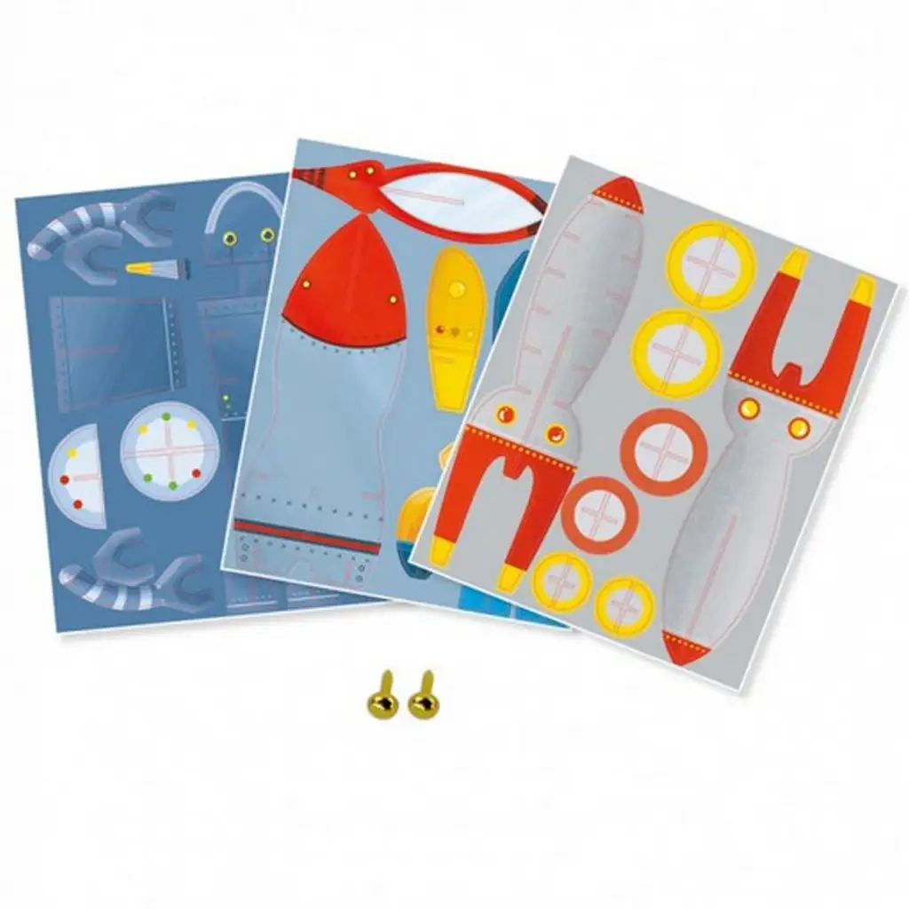 Počas hry deti nielenže vytvárajú jedinečné vesmírne nástroje, ale zároveň nenápadne rozvíjajú svoju zručnosť, priestorové videnie a kreativitu. Set obsahuje všetky potrebné prvky: predrezané kartónové listy a malé kovové spony pre pohyblivé časti. Zostavenie modelov je jednoduché, nevyžaduje nožnice ani lepidlo, takže je bezpečné a zábavné aj bez pomoci rodičov.