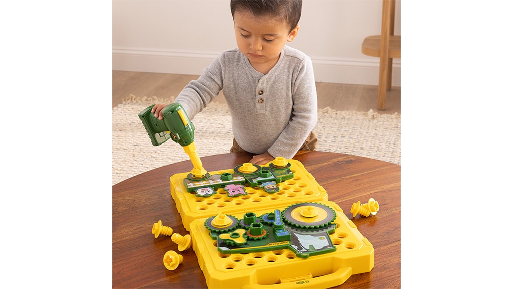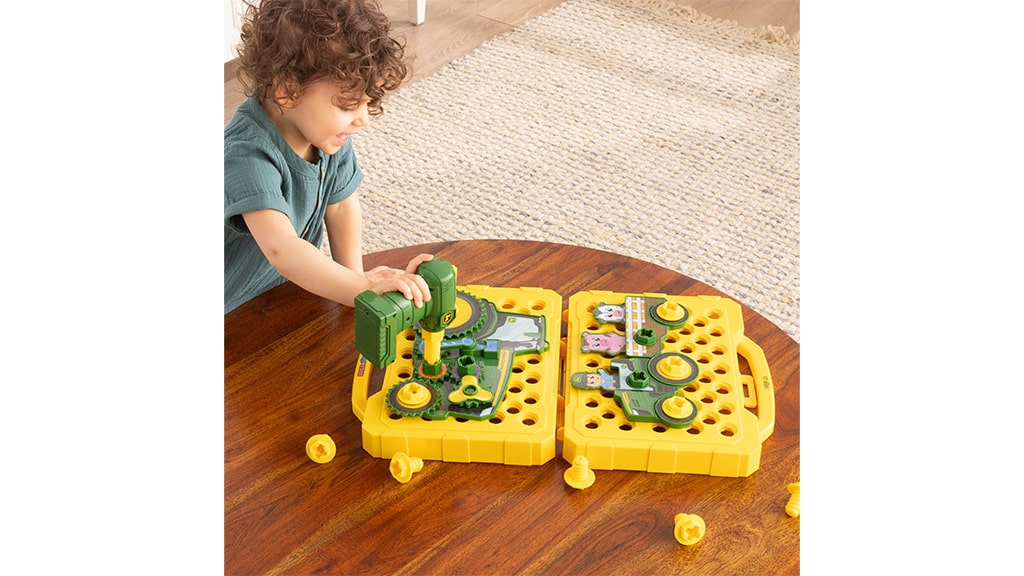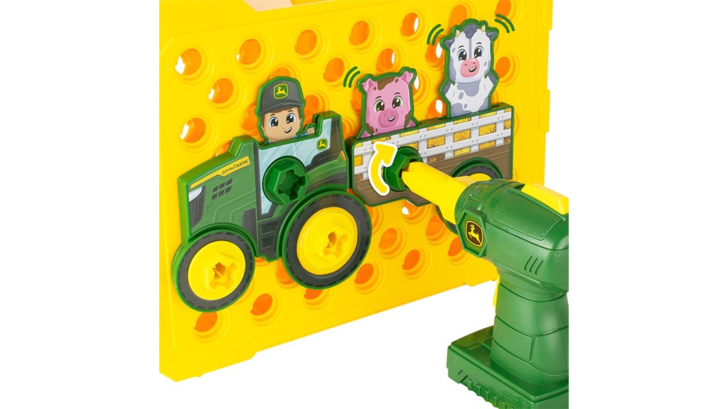 John Deere Build-A-Buddy Activity board obsahuje dve rôzne farmárske scény. Táto hračka poskytuje deťom vynikajúcu príležitosť kreatívne objavovať vidiecky život, pričom si rozvíjajú jemnú motoriku a schopnosť riešiť problémy. Farebné, detailné scény pomáhajú rozvíjať predstavivosť a zaručujú hodiny zábavy.Malým deťom sa rozvíjajú jemnomotorické schopnosti, keď stláčajú tlačidlo vŕtačky. Táto činnosť nie je len zábavná, ale pomáha aj rozvoju koordinácie ruka-oko a presných pohybov. Takéto hračky prispievajú k rozvoju zručnosti rúk, čo bude neskôr užitočné pri písaní, kreslení a iných každodenných činnostiach.