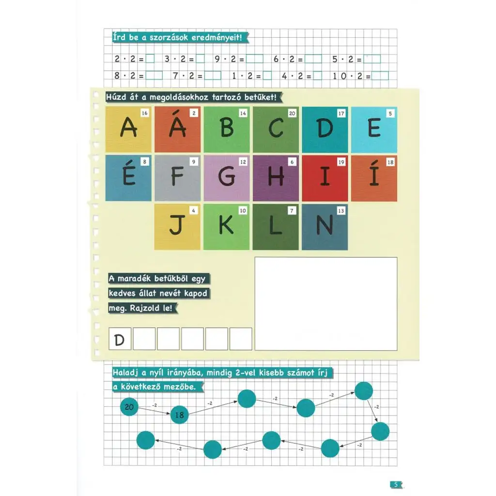 Cvičebné zošity sú ideálne pre malých školákov, ktorí môžu doma cvičiť, zamerať sa na časti, ktoré ešte neovládajú, alebo si precvičovať to, čo sa naučili v škole. Tento 48-stranový zošit obsahuje množstvo úloh z maďarského jazyka aj matematiky, ktoré pomáhajú druhákom výrazne sa zlepšiť. Pomocou neho sa môžu naučiť nové slová, riešiť logické úlohy a v matematike si precvičovať základné počty. Tento zošit dáva žiakom možnosť pracovať vlastným tempom, čo pomáha lepšie pochopiť učivo a upevniť naučené. Riešením úloh si deti rozvíjajú schopnosti riešiť problémy, logické myslenie a samostatnosť.