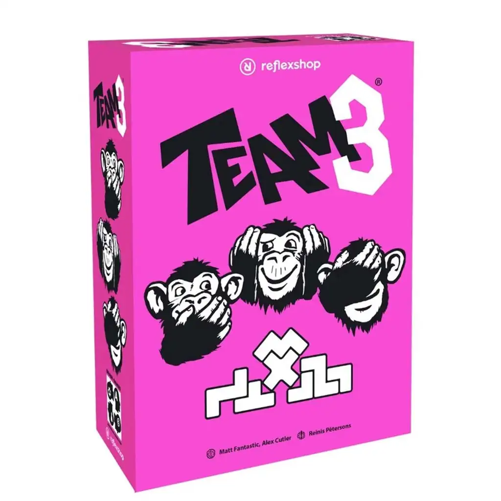 Spoločenská hra Team3 ružová je šialene zábavná kooperatívna párty hra, v ktorej sa hráči snažia v troch rôznych úlohách o spoločný cieľ: postaviť mrakodrap! Zápletka? Jeden hráč nevidí, druhý nemôže hovoriť a tretí je zodpovedný za tlmočenie informácií. Ak nebudete dokonale spolupracovať, spoločný úspech sa nedostaví – a ani banánový koktail nebude!