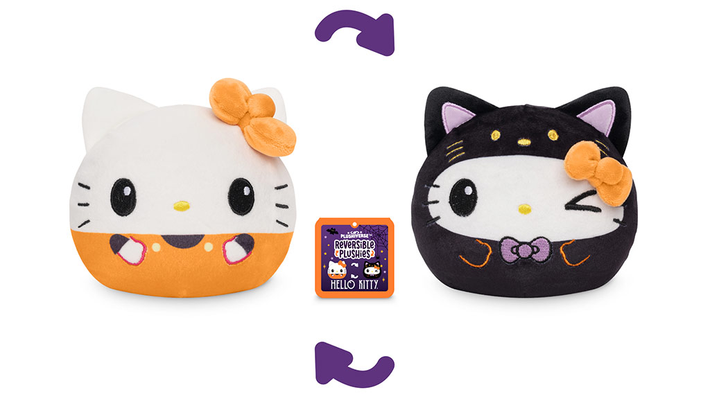 Aj keď deti nie sú veľkými fanúšikmi Hello Kitty, môžu sa zúčastniť strašidelnej, obojstrannej plyšovej zábavy s novou, halloweenskou prekvapivou krabicou! Každá krabica obsahuje 3-palcový obojstranný plyš, ktorý po otočení odhalí strašidelnú bytosť. Môžete zbierať šesť rôznych plyšov, vrátane axolotla, ktorý sa mení na čarodejnicu, netopiera, ktorý má priateľskú a strašidelnú stranu, mačku, ktorá sa mení na kostru, pandu, ktorá sa mení na zombie, jack-o-lampáš, ktorý má zlú stranu, a pavúka, ktorý sa najprv zdá byť priateľský, ale po otočení odhalí strašidelnú bytosť. Plyše sú dostupné jednotlivo alebo ako kompletná sada za 84 dolárov. Kompletná sada zaručuje, že deti dostanú všetky plyše z kolekcie.