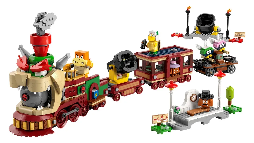 Tri sady LEGO, ktoré sa pripájajú k univerzu LEGO Super Mario, sú Bowser Express Vlak, King Boo Duchovný hrad a Bitka s Royom v Peach hrade.Bowser Expressz Vonat obsahuje 1,392 LEGO dielov a disponuje interaktívnymi funkciami, ako je napríklad platforma ovládaná pákou, Super Star Blok, osobný vagón s odnímateľnou strechou a „?“ Blok, ako aj lôžkový vagón s pružinovou posteľou.