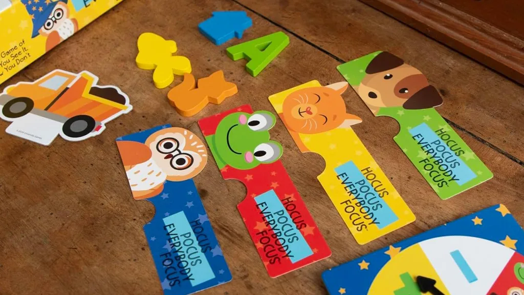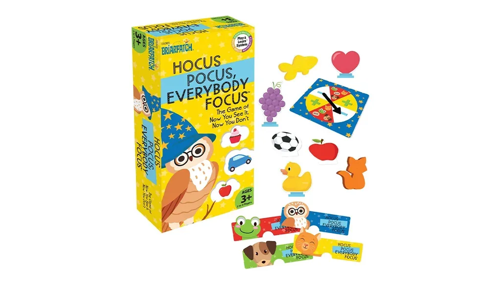 Táto hra vyzýva hráčov, aby si nasadili masky a pokúsili sa spomenúť si, aké hmatateľné alebo ploché predmety odstránili alebo pridali k hracej ploche. Cieľom hry je podnietiť deti k používaniu ich pamäte a priestorovej orientácie.Nakoniec, Hocus Pocus, Everybody Focus je pamäťová hra, v ktorej každé dieťa nosí masku a musí pomocou dotyku určiť, aké predmety boli pridané alebo odobrané z hracej plochy.