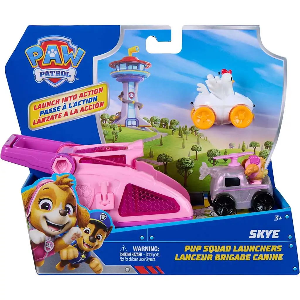 Misia hliadka: Štartovacia stanica – Skye je perfektnou voľbou pre každého malého fanúšika, ktorý miluje dynamické a pôsobivé záchranné akcie. Štartovacia stanica v ružovo-fialových farbách je sama o sebe vzrušujúca, no skutočný zážitok prináša štartovacia funkcia: jediným pohybom možno vozidlo vyslať na cestu, aby sa Skye bleskurýchlo dostala na miesto pomoci. Sada obsahuje figúrku Skye s jej vozidlom a taktiež zábavný doplnok, takže hra sa môže začať okamžite.