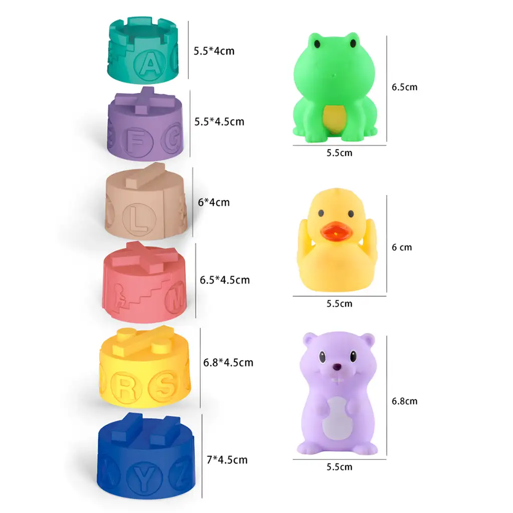 Touchball: Sada na rozvoj jemného dotyku s 9 dielmi na stavanie veže so zvieracími figúrkami
