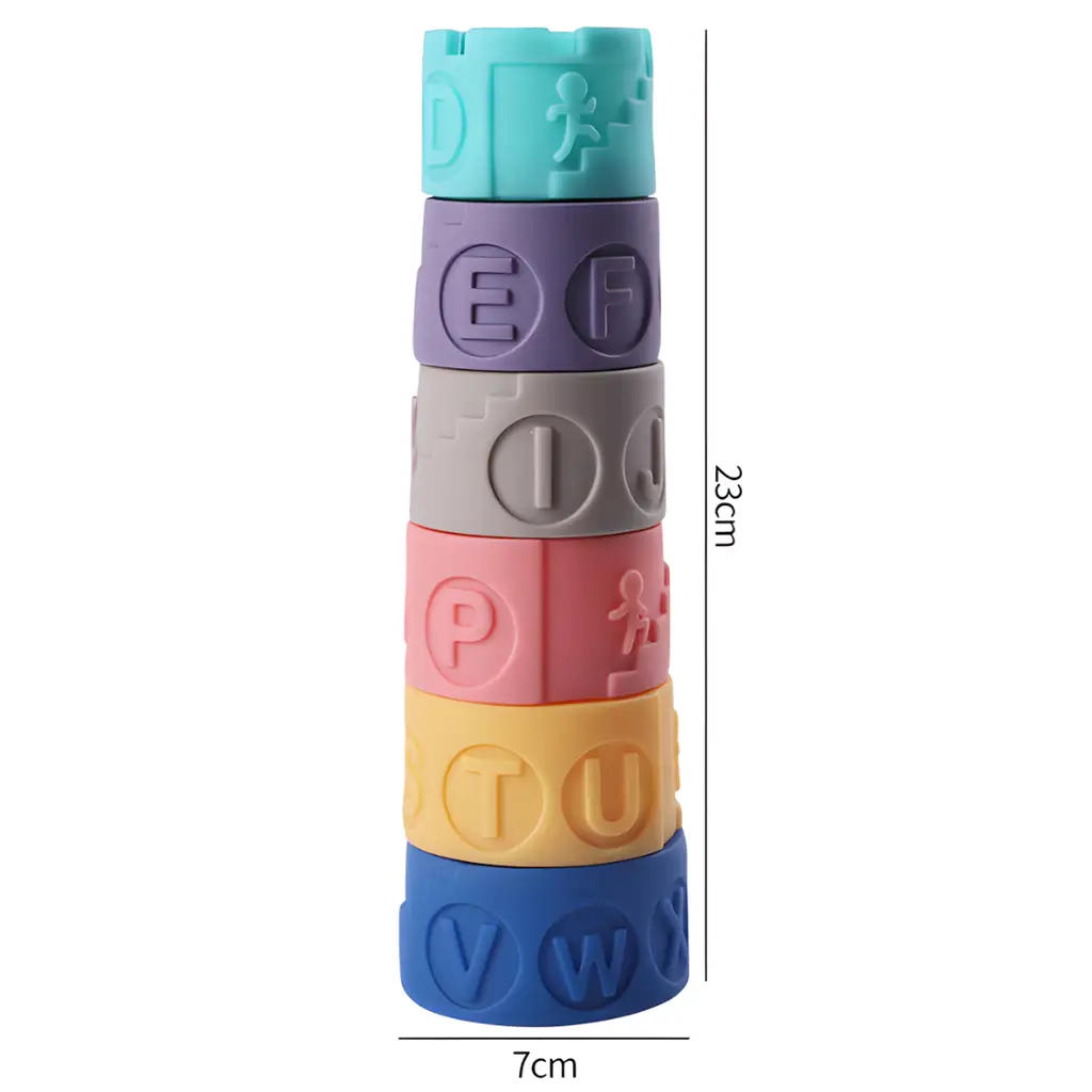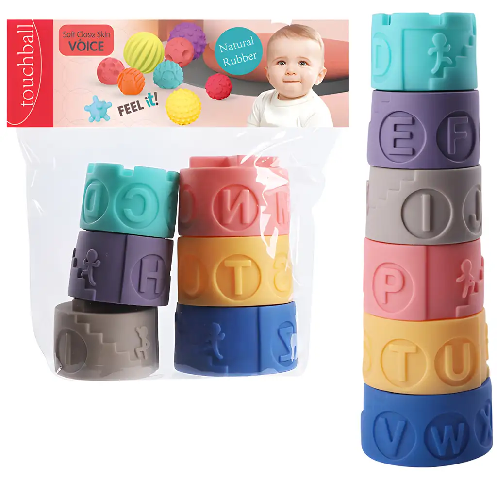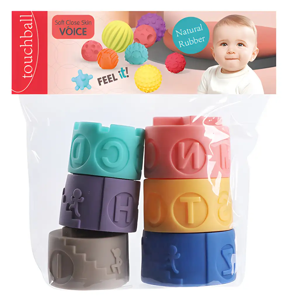 Hmatový rozvojový mäkký stavebný set je vynikajúcou príležitosťou pre tvoje dieťa na rozvoj kreativity a motorických schopností. Sada obsahuje 6 rôznych farieb mäkkých valcovitých stavebných prvkov, každý s unikátnymi písmenovými vzormi, aby poskytli zaujímavý hmatový zážitok.