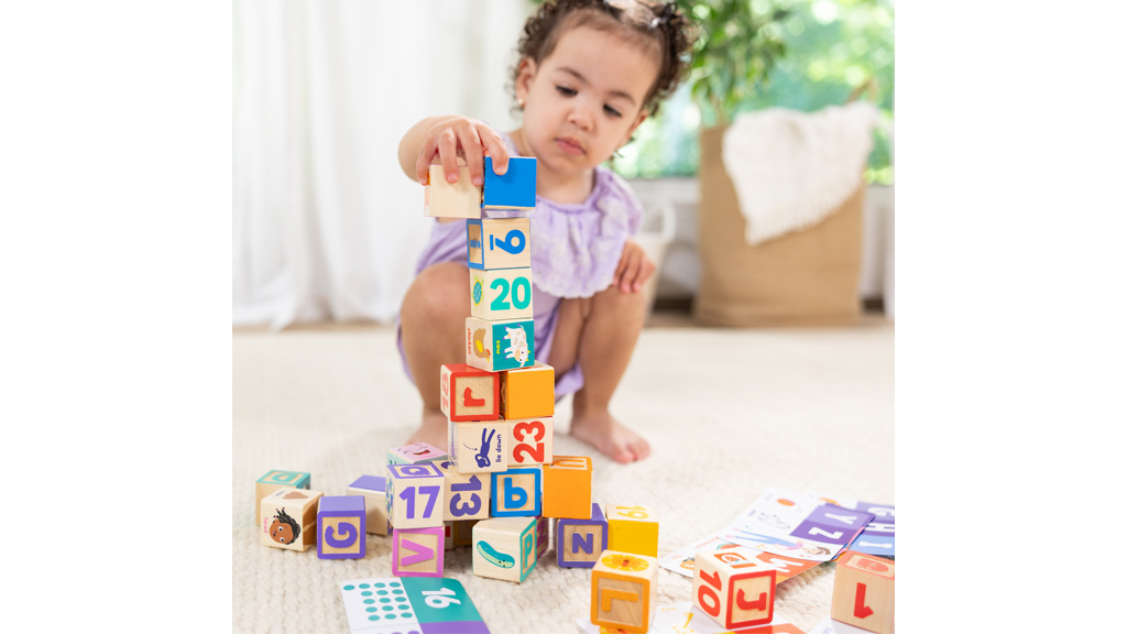 Táto súprava obsahuje 26 embosovaných blokov a 14 obojstranných aktivítových kariet, ktoré sú inšpirované videami pani Rachel. Na blokoch sú písmená, čísla, obrázky, farby, zvieratá, časti tela, emócie a pohyby. Na aktivitových kartách sú párovacie a počítacie cvičenia, nápady na hry, informácie o rozvojových zručnostiach a tipy pre dospelých. Všetko je uložené v prenosnej krabici.