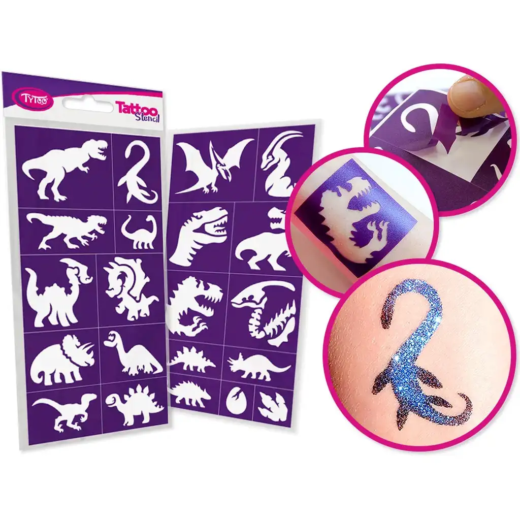 TyToo: Sada šablón na trblietavé tetovanie dinosaurov 21 ks