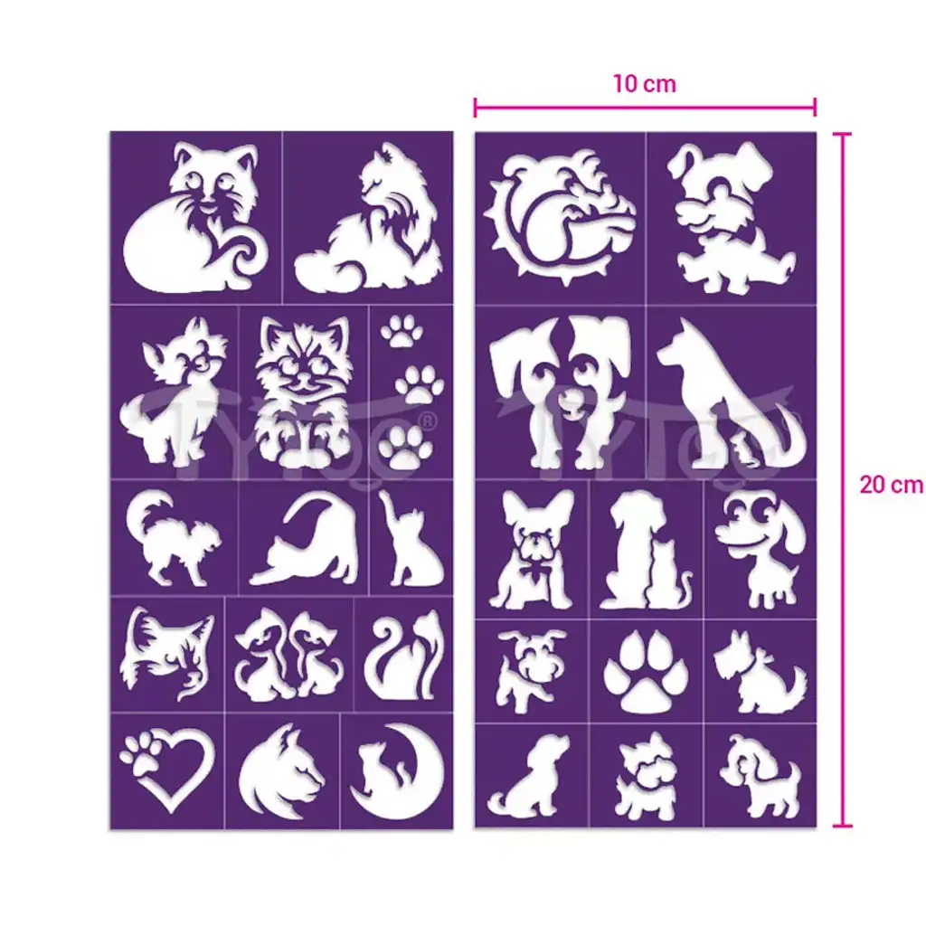 TyToo: Sada šablón na trblietavé tetovanie psov a mačiek, 27 ks