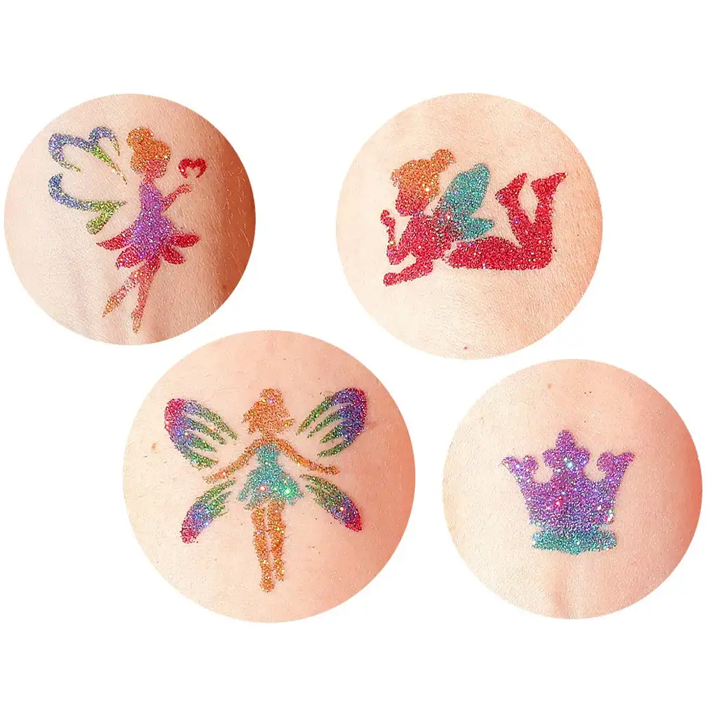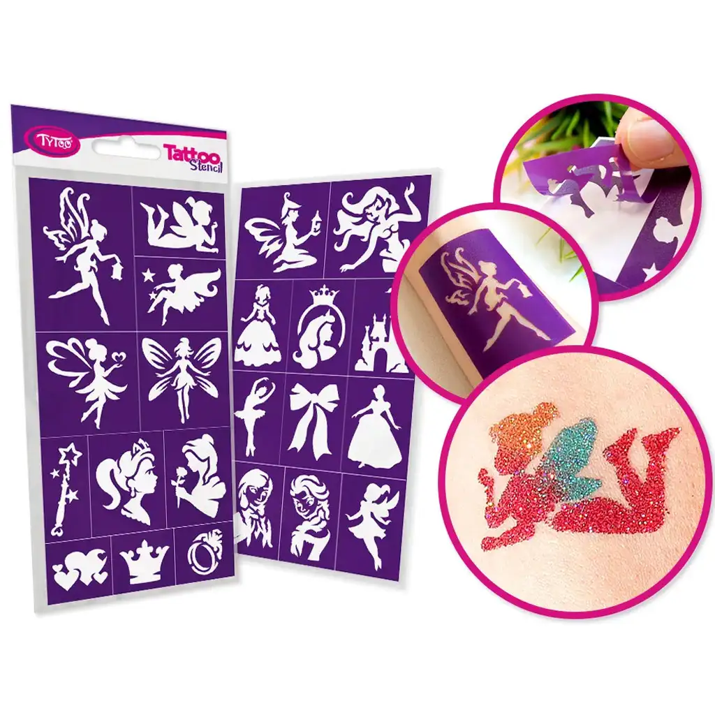 TyToo: Sada šablón na trblietavé tetovanie víly a princezné, 22 ks