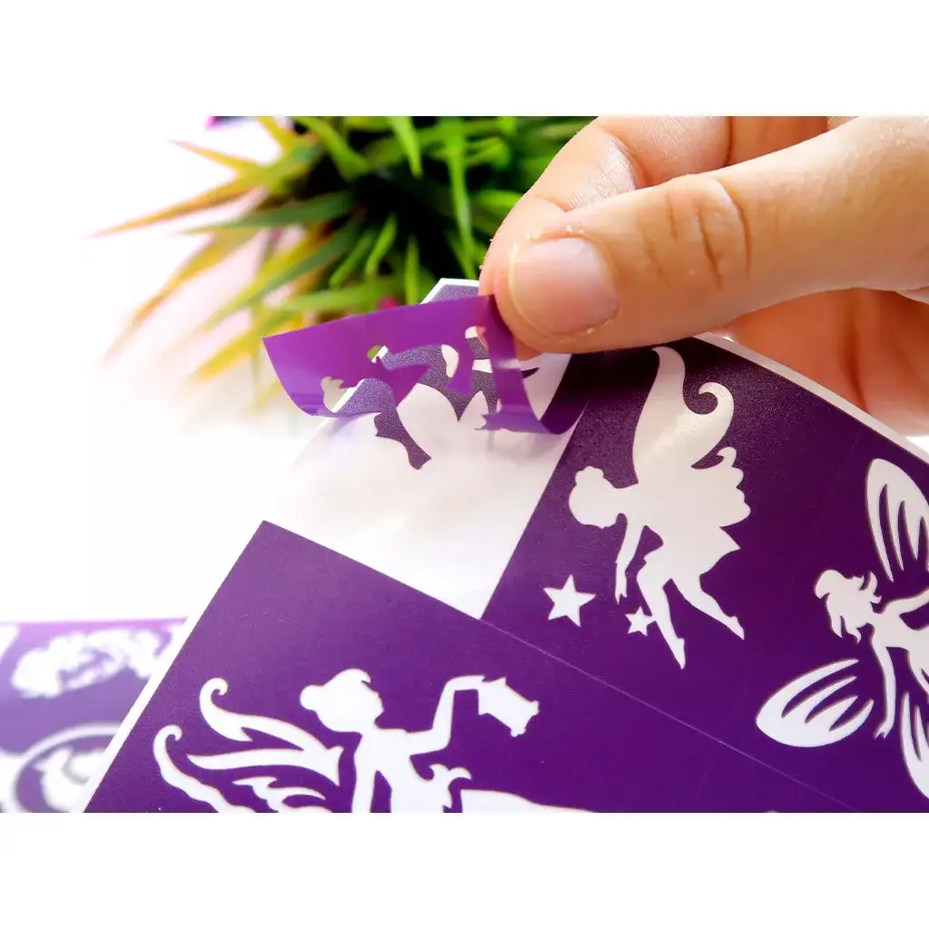 Táto sada šablón je dokonalou voľbou pre každého malého snílka, ktorý sa rád schováva za vílie krídla alebo si predstavuje, že je hrdinskou rozprávkovou princeznou. Samolepiace šablóny môžete jednoducho pripevniť na pokožku a s pomocou trblietok alebo telových farieb vytvoriť naozaj pestrofarebné a žiarivé tetovania. Lepidlo dobre drží, ale nedráždi pokožku, preto sú šablóny bezpečné aj pre menšie deti.