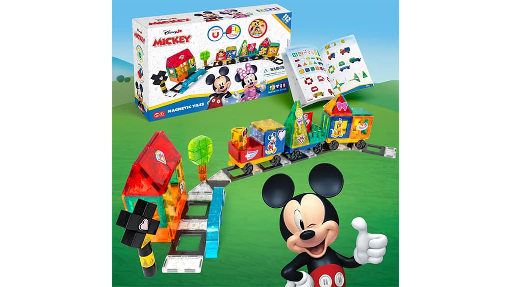 Táto výnimočná sada nielenže rozvíja kreativitu a predstavivosť, ale pomáha aj rozvoju schopnosti riešiť problémy a jemnej motoriky. Deti si môžu stavať vlastné zámky a dráhy, pričom sa hrajú so svojimi obľúbenými Disney princeznami, takže učenie a zábava sa v tejto magickej sade dokonale spájajú.K ponuke sa pripája aj Disney Junior Mickey Mouse Jumbo Vlak Magnetická Dlaždicová Sada. Sada pozostáva zo 112 kusov. S farebnými dlaždicami je možné stavať železničné trate, železničnú stanicu a mnoho ďalšieho. V balení sa nachádzajú aj opakovane použiteľné nálepky s klasickými postavičkami Mickey, Minnie a Pluto. Táto sada nie je len zábavná, ale rozvíja aj kreativitu a jemnú motoriku, takže je ideálnou voľbou pre každé dieťa, ktoré miluje svet Disney a stavebné hračky.