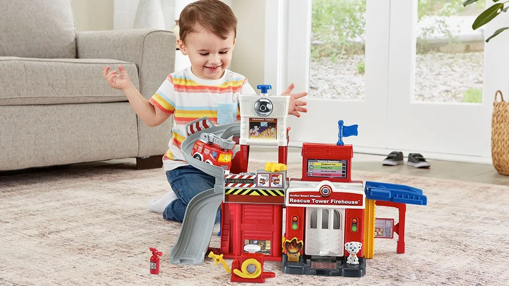 Deti môžu objaviť päť pohyblivých dielov, keď otvoria brány, garáž, hydrant a mnoho ďalších vecí. Hračky ako dalmatínsky pes, oheň, hasičské vybavenie a hasičská hadica podporujú rolovú hru a fantáziu.