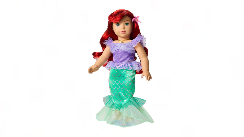Chcel by si, aby bola súčasťou tvojho sveta? Disneyho malá morská víla, princezná Ariel, sa teraz objavuje v podobe bábiky American Girl! Oblečená v trblietavých morských šatách je pripravená získať si tvoje srdce. Táto bábika má Arieline charakteristické červené vlasy, zlatý mušľový náhrdelník, ružovú morskú kvetinovú sponku do vlasov a fialové mačacie topánky.